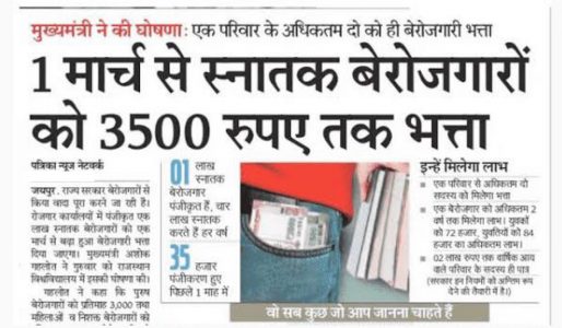 अगर आप बेरोजगारी भत्ता पाना चाहते हैं तो इसके लिए आपका नाम लिस्ट में होना चाहिए, जो लोग इस योजना में आवेदन करते हैं और जो इसके पात्र होते हैं उनका नाम लिस्ट में जारी किया जाता है। बेरोजगारी भत्ता से युवाओं को 3000 और युवतियों को 3500 रूपये की सहायता धनराशि देंगे। हमने आपको इस आर्टिकल में राजस्थान बेरोजगारी भत्ता कैसे चेक करें इसकी जानकारी विस्तार से बताया है तो आप इसका अलोकन करके लिस्ट चेक कर सकते हैं। नीचे सभी जानकारी विस्तार से दिया है।