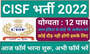 CISF Bharti 2022: CISF की नयी 12 पास भर्ती आ गई है इसकी योग्यता केवल 12 पास है और इसका सेलवेज भी नीचे आपको उपलब्ध है उसका जो इंपॉर्टेंट डेट से मतलब किस दिन सॉन्ग स्टार्ट होगा किस दिन इसकी लास्ट डेट होगी इस पोस्ट में हम इसी के बारे में सब कुछ जाने के लिए आपको पूरा पढ़ना पड़ेगा आज ही यह सब की नई भर्ती जारी हुई है तो जो पूरे ऑल इंडिया से इसे भर सकते हैं कोई भी इसे भर सकता मेल फीमेल दोनों भर सकते हैं केवल 12 पास योग्यता होनी चाहिए
