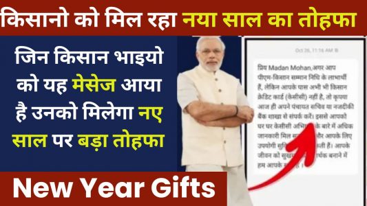 KCC New Year Gifts – किसान क्रेडिट कार्ड एक महत्वपूर्ण योजना है, लेकिन जिन किसान भाइयों ने अब तक अपना किसान क्रेडिट कार्ड नहीं बनवाया है उनके लिए एक अच्छी खबर आई है। सरकार सभी किसानों का क्रेडिट कार्ड बनवा रही है। जो किसान लोन लेकर खेती करते हैं मुख्य रूप से उन्हें एक मैसेज भेजा जा रहा है। अगर आपने भी लोन लेकर खेती किया है तो आपके मोबाइल पर भी एक मैसेज आएगा जिसके अनुसार ऑनलाइन क्रेडिट कार्ड बनवाना होगा।