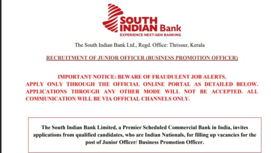 About Post- The South Indian Bank (SIB Bank-Business Promotion Officer) Ltd., a Premier Scheduled Commercial Bank in India, has released an official recruitment notification for the post of Junior Officer / Business Promotion Officer. Eligible Indian Nationals who fulfill all eligibility criteria including age, qualification and work experience can apply online through the official website. The appointment will be on contract basis initially for 3 years with attractive CTC of ₹7.56 Lakh per annum.