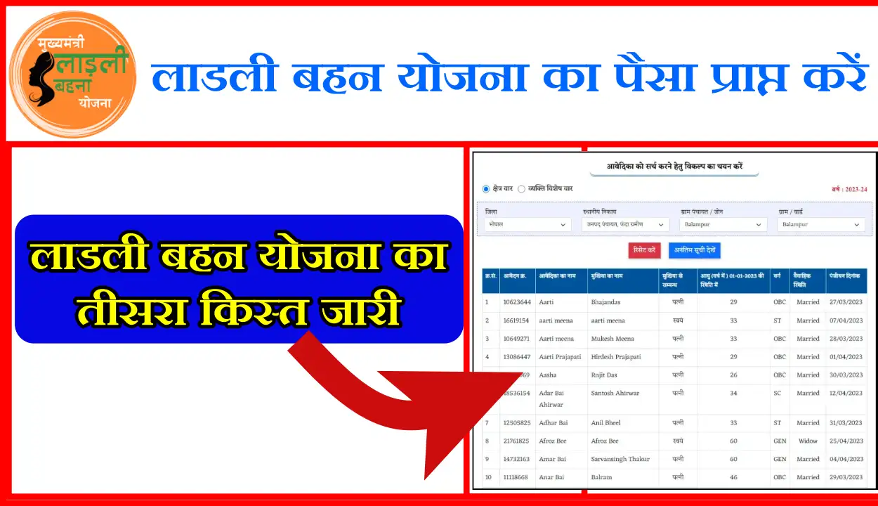 - Ladli Behna Yojana: लाडली बहन योजना की तीसरा किस्त जारी हुआ जल्दी चेक करें अपना नाम