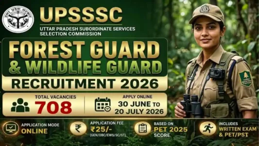 About Post : The Uttar Pradesh Subordinate Services Selection Commission (UPSSSC) has officially released the notification for UPSSSC Forest Guard Recruitment 2026. This recruitment drive aims to fill a total of 708 vacancies for Forest Guard and Wildlife Guard posts.